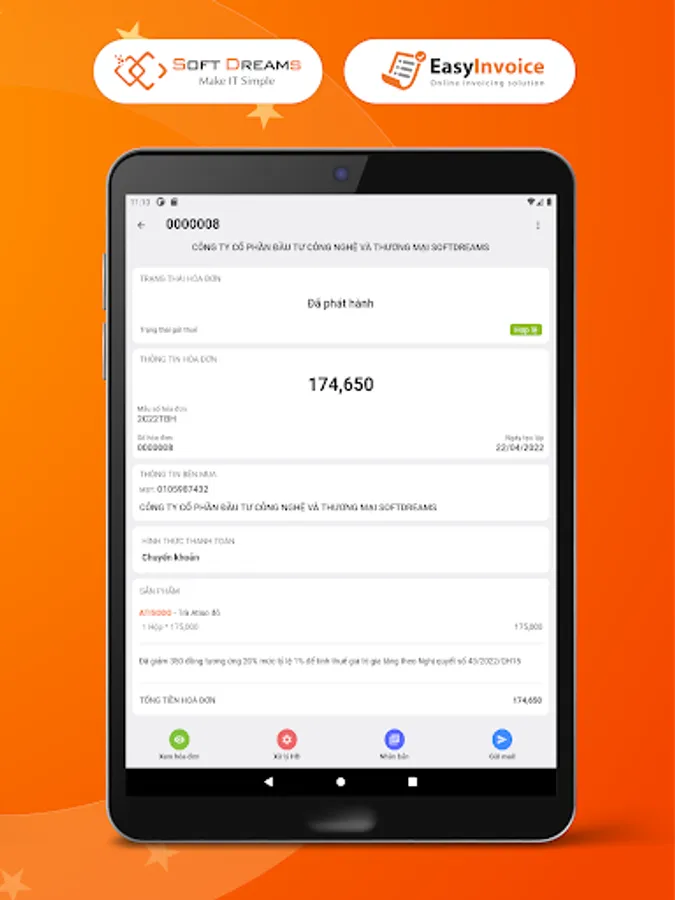 EasyInvoice is an application developed by Softdreams Trading and Technology Investment Joint Stock Company.
