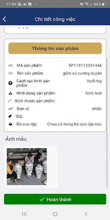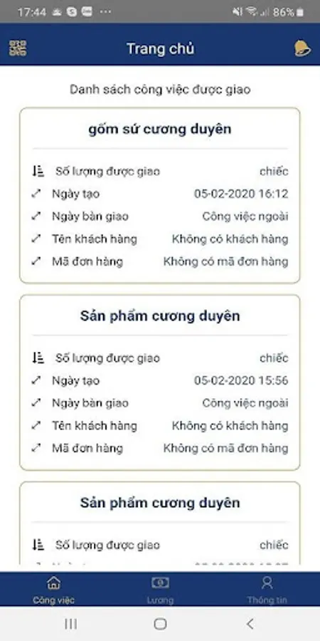 Ứng dụng cho nhân viên của xưởng sản xuất gốm Cương Duyên - Bát Tràng làm việc.