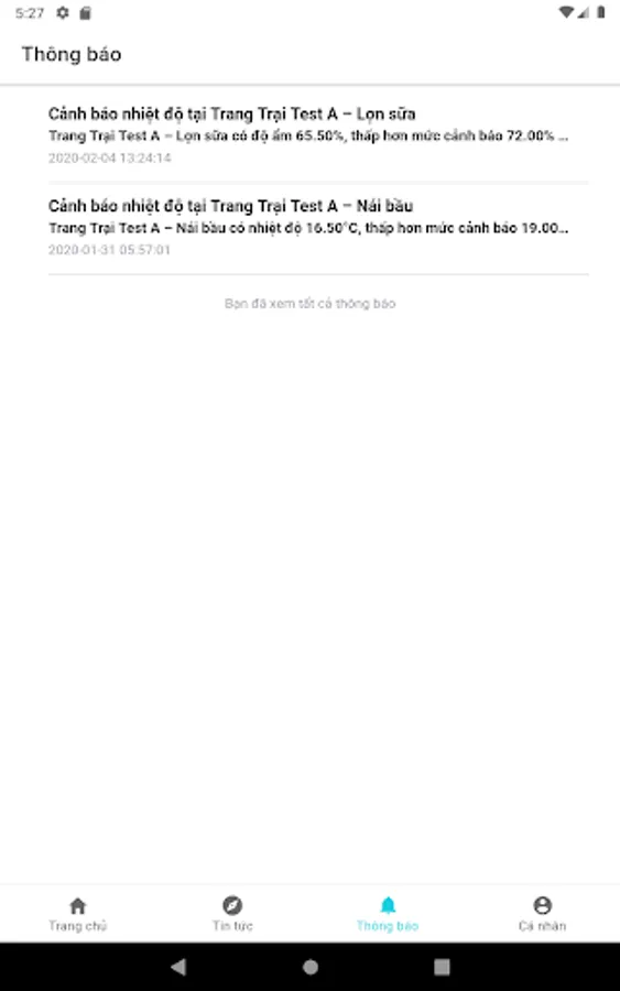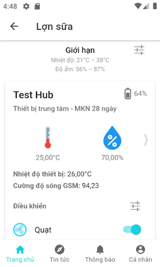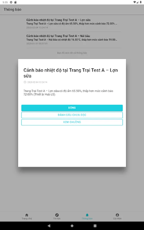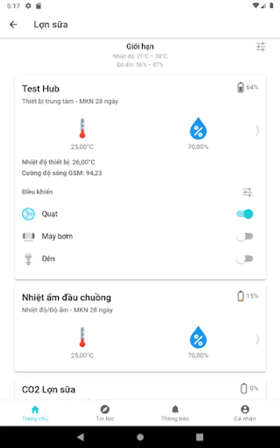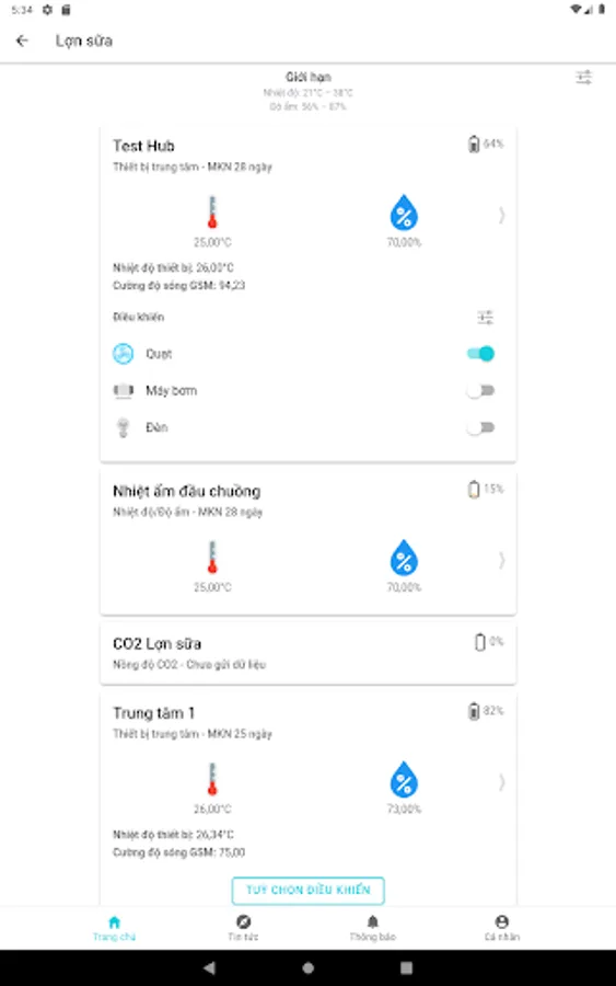 - Receive notifications when temperature, humidity, pH, ... exceed the limit