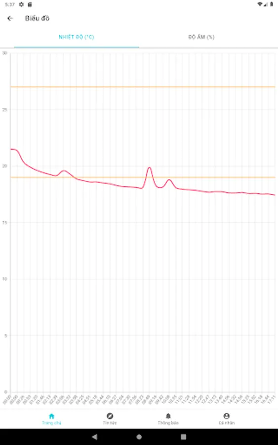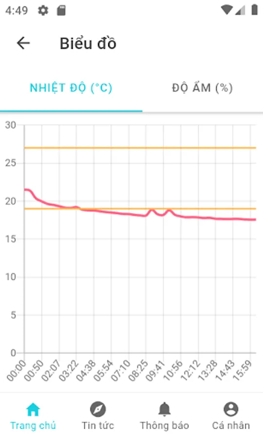 - See charts showing fluctuations of temperature, humidity, pH, ... values during the day