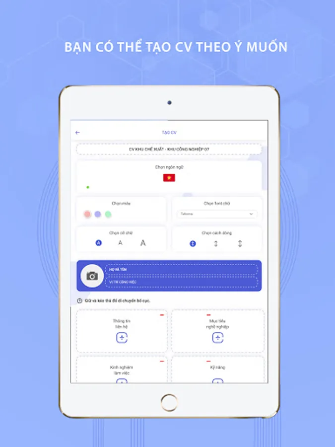 When creating a CV, the operation is extremely simple, you just need to choose a simple online CV template with the right industry and satisfactory design. The application allows you to see the preview to form ideas from the original, select the edit mode to be able to write your CV online.