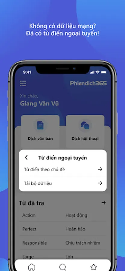 Besides online translation and online translation, Interpreter 365 also gives users a completely new feature that is offline translation. Even without an internet connection, the application can still perform the translation function with the help of AI and a "massive" database. Interpreting also meets the needs of users for an offline translation app.