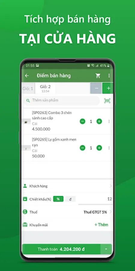Built-in barcode scanning with camera helps to find products to sell most quickly, create orders directly on mobile and print invoices for customers anywhere in the store.
