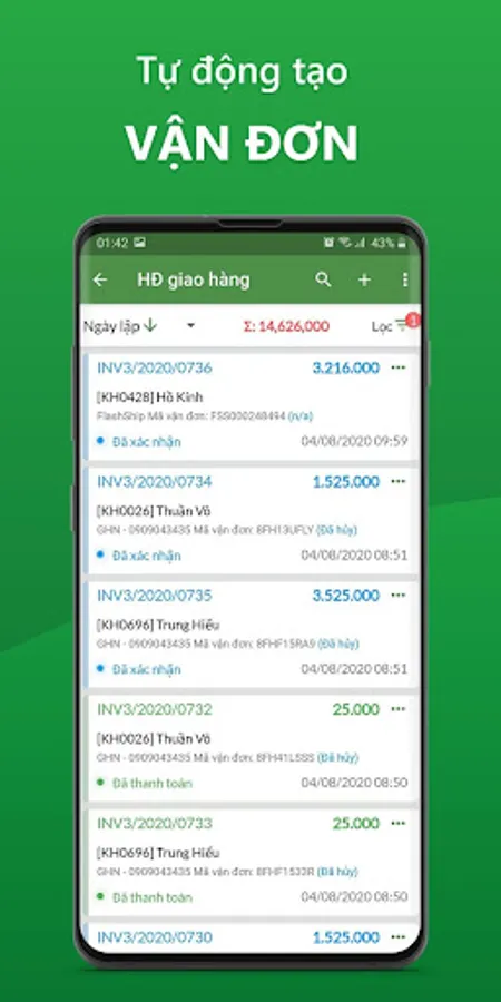 - From created orders, you can create quick delivery invoices and connect directly with delivery partners.
