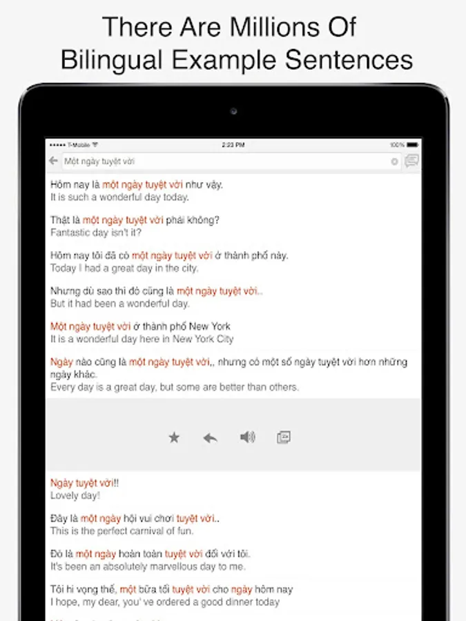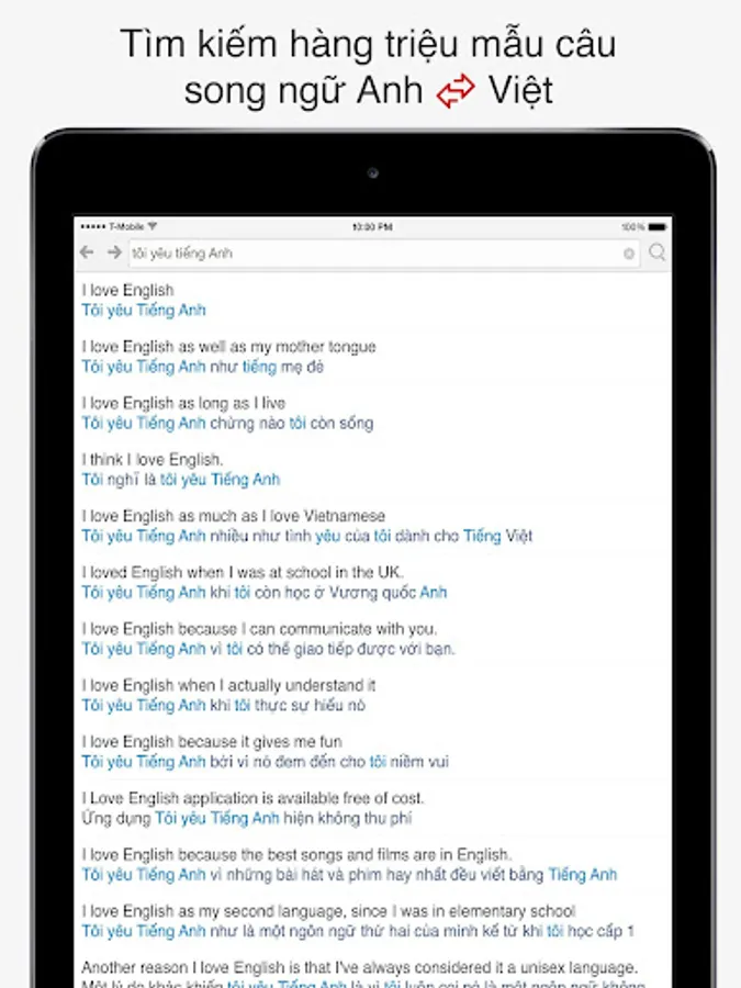 With millions of sentence pairs, Tracau is the only app in Google Play that enables users to search for meanings of words by the way they are used in sentences. For each query, user can quickly browse through the search results to choose the correct Vietnamese/English sentence for conversation, document writing, or translation. Users can search using both English and Vietnamese (with or without diacritics).