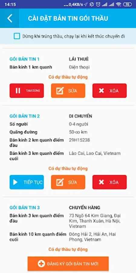 TadiCarrier has a "contract performance guarantee" tool that helps carriers securely pay. TadiCarrier is suitable for most carriers: motorbike taxi, taxi, contract tourist car; companies, transport agents, courier; vehicles: motorbikes, cars, airplanes, ships, trains.