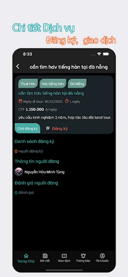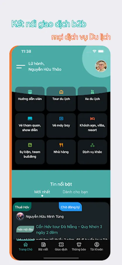 TripConnect is an application that connects B2B with all services of the tourism industry, including: Guides, Travel, Touring cars, Sightseeing and show tickets, Air tickets, Accommodation (Hotel, Villa, Resort, Homestay) ), Events and Team building, Restaurants, Other Tourism related services such as sea sports, club/bar/karaoke/spa/massage....
