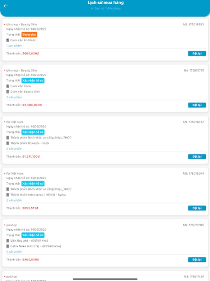 PalDoc is a purchase tracking application developed by Pal Vietnam company. The application allows users to track purchase records on online sales stores associated with MediDoc; find out information about the products you have purchased or related products; keep track of the reminders and notes of the shops for users and reset the purchased orders.