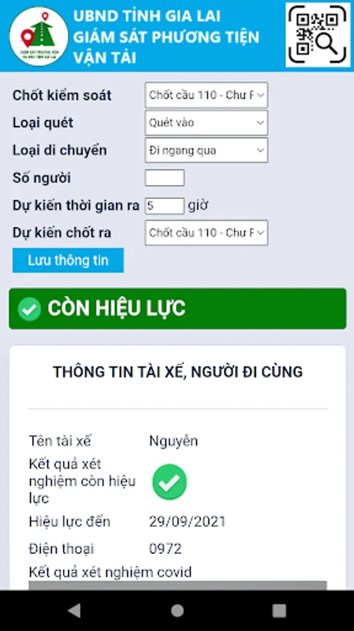 Control information in and out of Gia Lai province of vehicles issued with green channel cards.