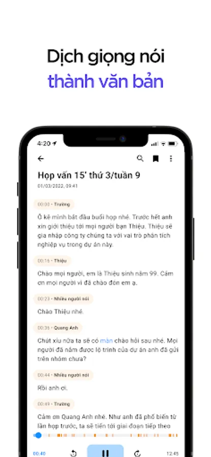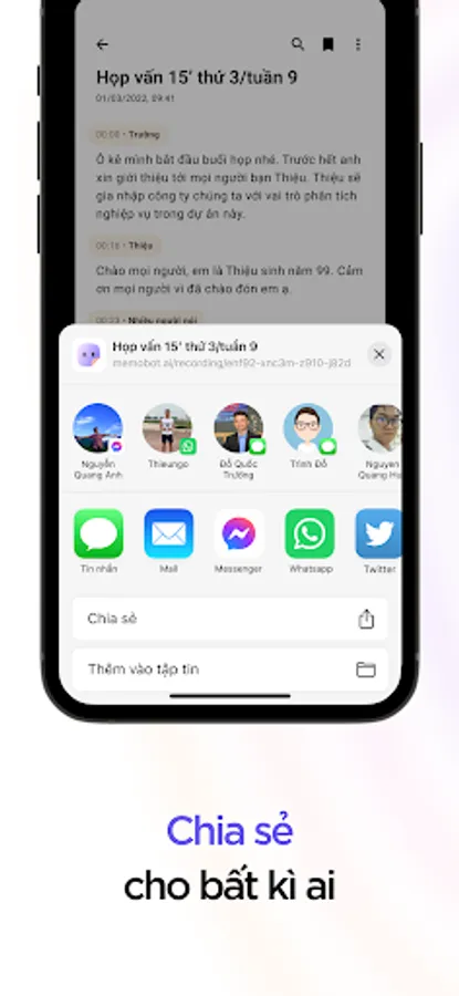 memobot is an application that applies artificial intelligence technology to help you translate voice to text with the click of a button. With the AI technology platform, memobot will become an effective assistant to help you be more productive by recording meetings, interviews, online lessons and converting to documents at the touch of a button.