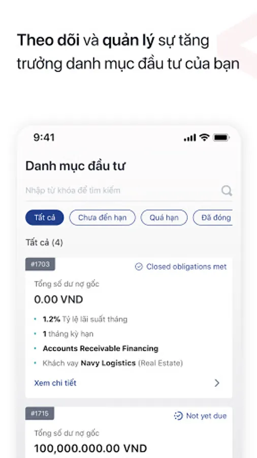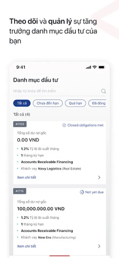 Validus Việt Nam là công ty Fintech đạt nhiều giải thưởng, sở hữu nền tảng cho vay tín chấp doanh nghiệp vừa và nhỏ hàng đầu, kết nối nhà đầu tư cá nhân giá trị cao và các quỹ đầu tư uy tín với doanh nghiệp vừa và nhỏ đang cần vốn vay.