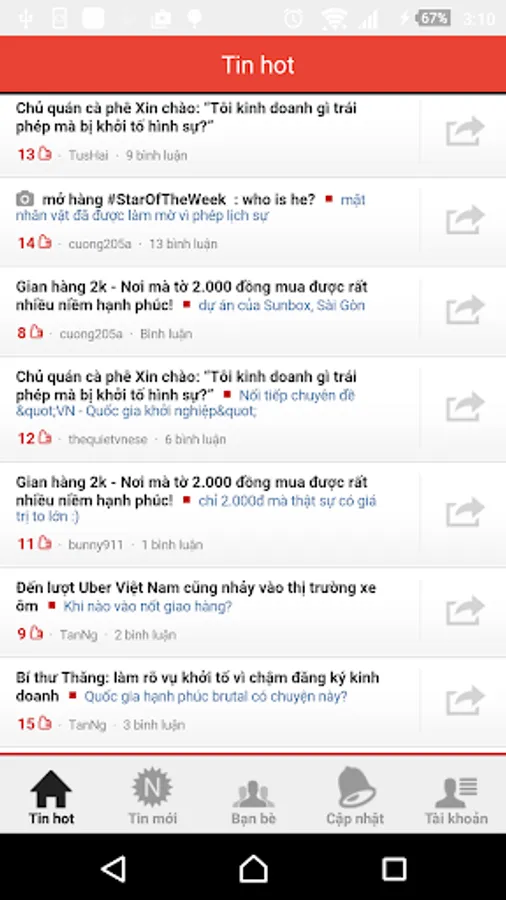 Visit the "News" you will fastest update new content is posted, and participate in deciding what content interesting, by clicking on the "Hay" to the left of each message. When you share your content attracts the attention of numerous readers, it will become the "hot news" and appear on the homepage and in the corresponding channel. The problem you will become interested in community matters are concerned and are hotly debated.