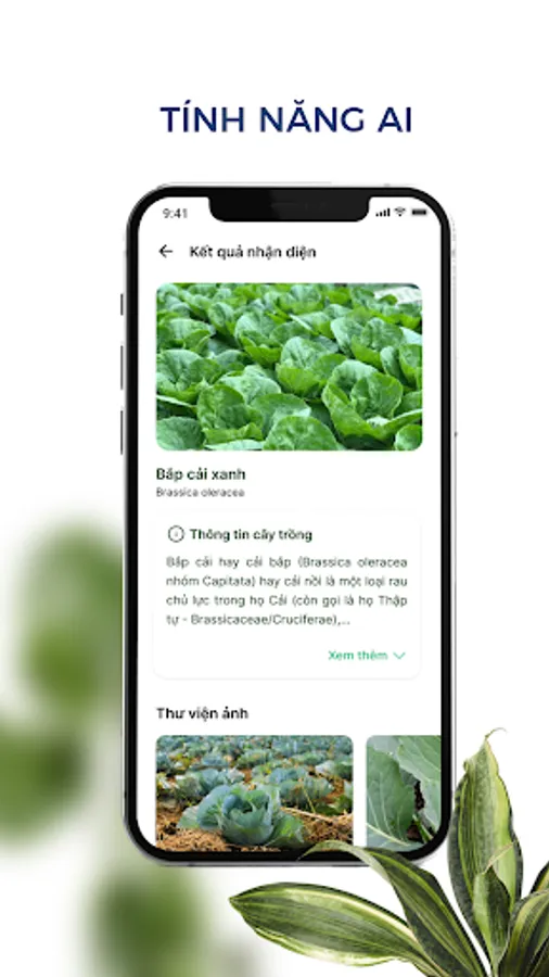 • AI nhận diện cây trồng, sâu bệnh hại cây trồng và tư vấn giải pháp phòng ngừa, điều trị.