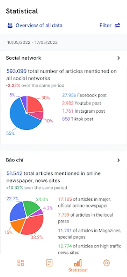+ Multi-channel data collection: Collecting information by keywords from newspapers, Facebook, Youtube, forums