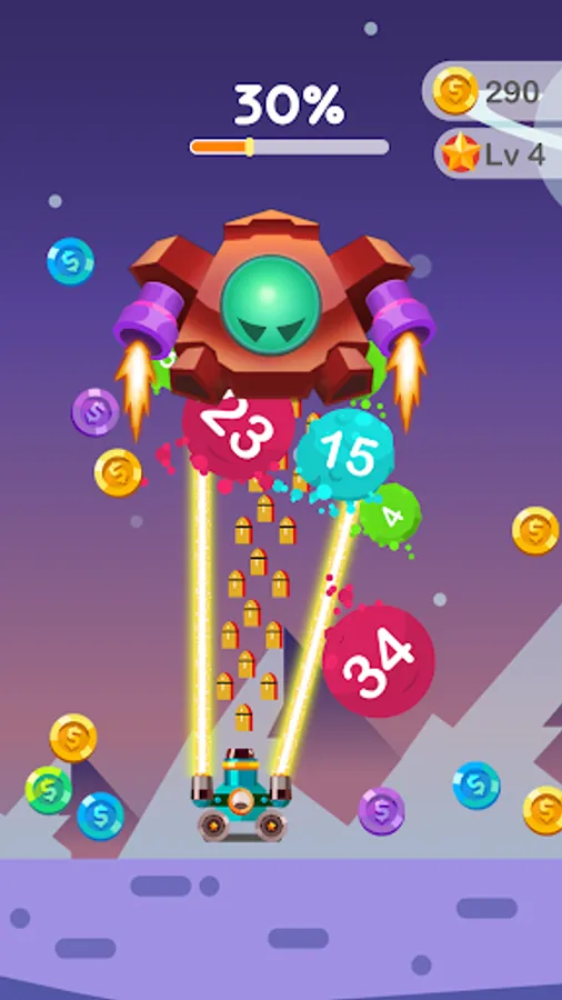 - Collect gold by destroying balls and upgrade your cannon.