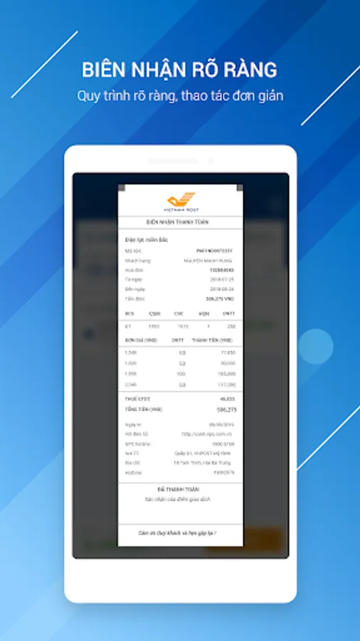 Application for VnPost Cashier nationwide to collect charges (Invoice: Electricity, Water, Television, Internet ...) on Smartphone SmartPhone, tablet.