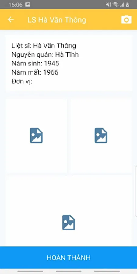 Application for photographing martyrs 'tombs is an application aimed at collecting and storing images of martyrs' tombs by cemeteries.