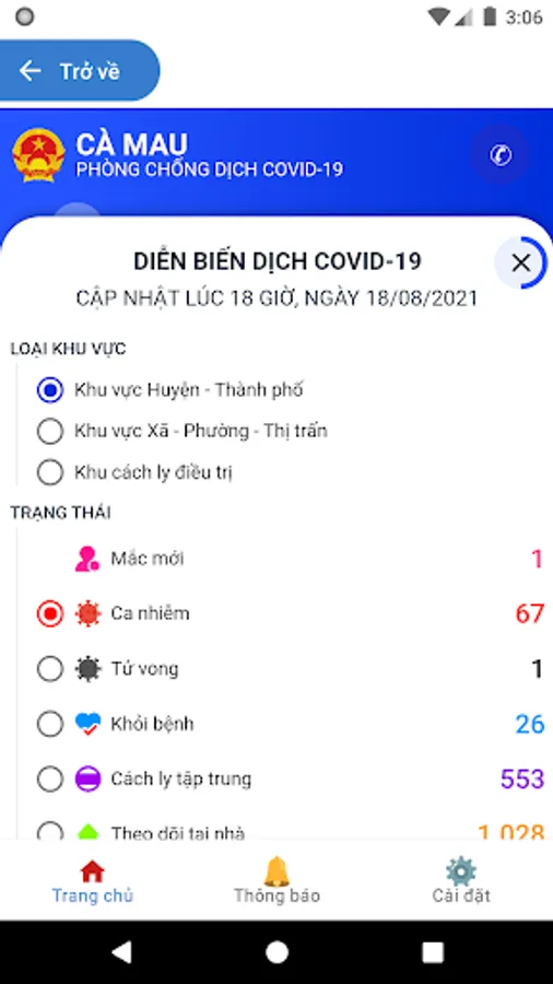 The application allows people to look up basic utilities such as: administrative procedures, environmental monitoring, land, camera ... In addition, people can create a reflection on the application for the government to handle. and monitor the progress and effectiveness of the government's work.