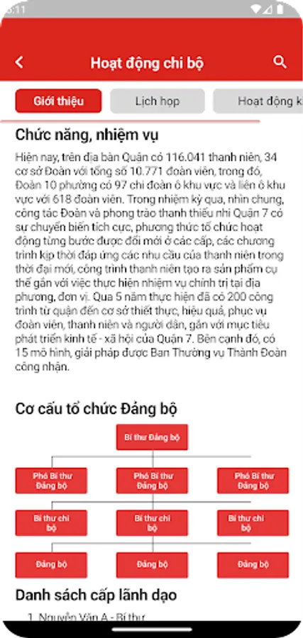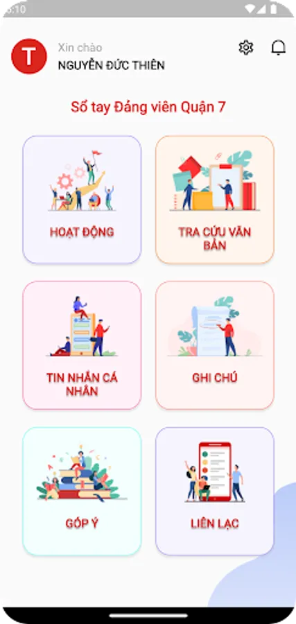 The District 7 Party Member Handbook is an application built for the purpose of managing the activities of the cell branches, as well as the activities of the Party members in the cell. The software helps to organize the contents of the meeting such as meeting schedule, members, documents and tasks of Party members, attendance, election, voting to be specific, clear and in accordance with the organizational process. The District 7 Party Member Handbook application is also a place for Party members to look up and store documents related to their activities as well as take notes during meetings. Here, each Party member can message, contact to perform the assignment of Party member tasks and exchange related documents. In addition, the application allows Secretaries to view the activities of each cell, the status of handling specific comments/tasks.