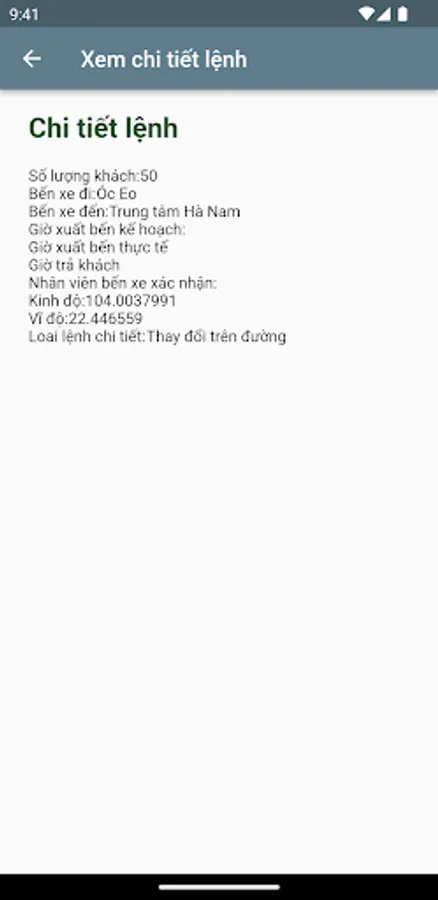 transportation order management software to manage transportation orders and transmit data about transportation order information including Transport business cooperative information, Departure bus station information, Arrival bus station information, Route information, vehicle information, vehicle trip information to transmit to the Directorate for Roads of Vietnam.