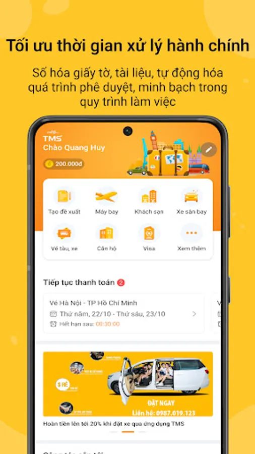 The application "Vntrip TMS" helps businesses save time, costs, resources and especially optimize cash flow in management and travel.