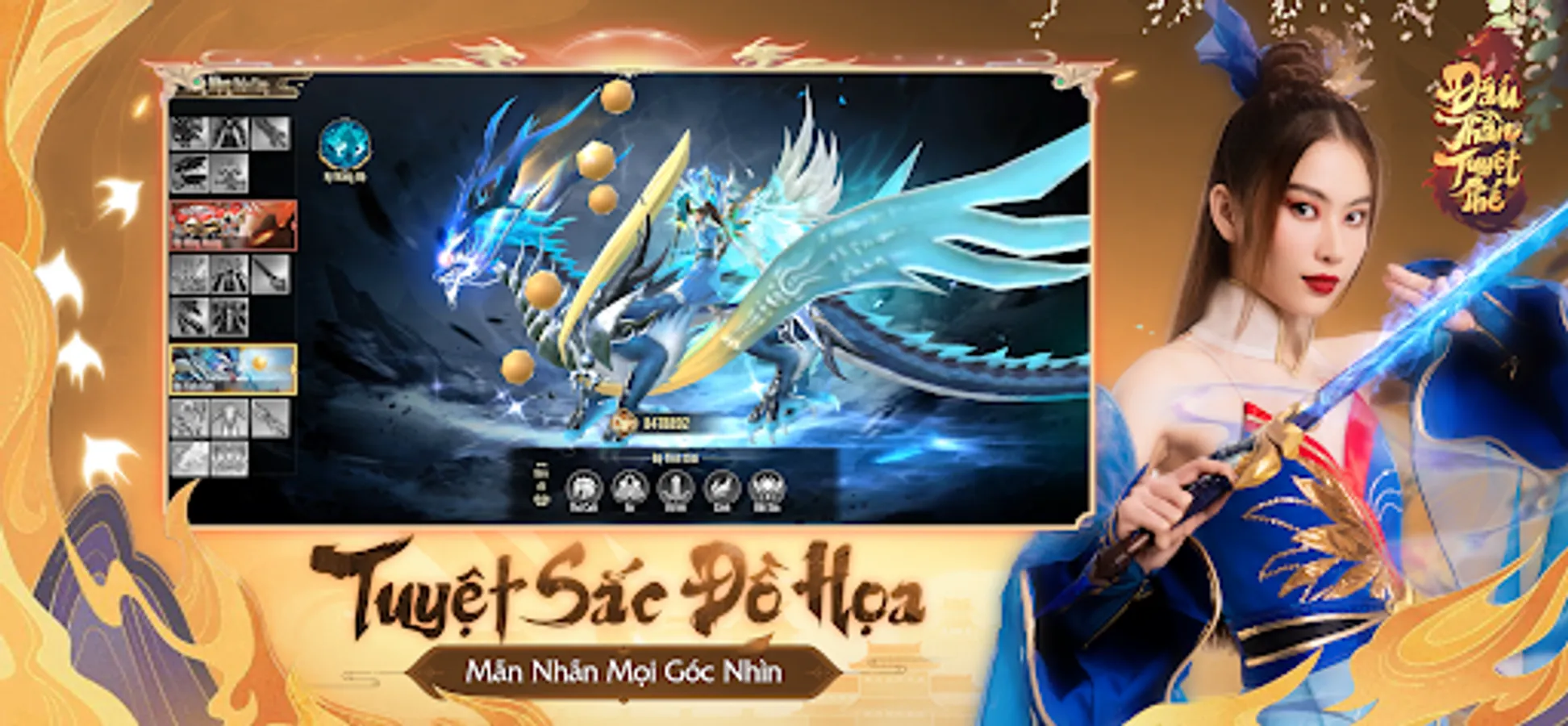 - Đồ họa 3D siêu việt, zoom cận cảnh chất lượng cao, hiệu ứng skill ngoạn mục giúp bạn trải nghiệm sắc nét vẻ đẹp hoàn mỹ trong từng khung hình.