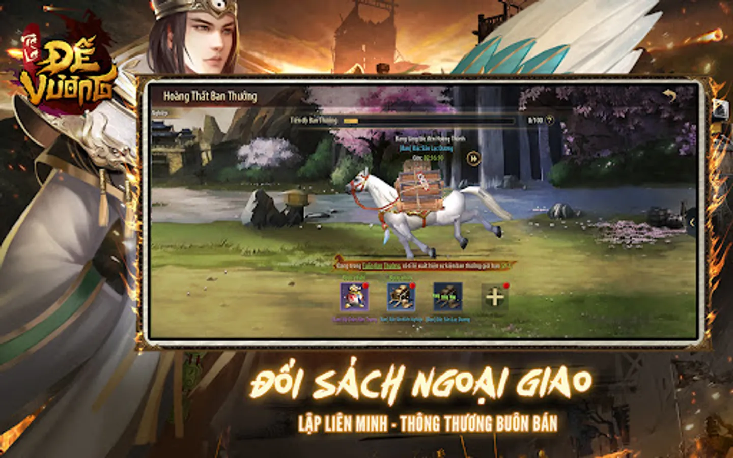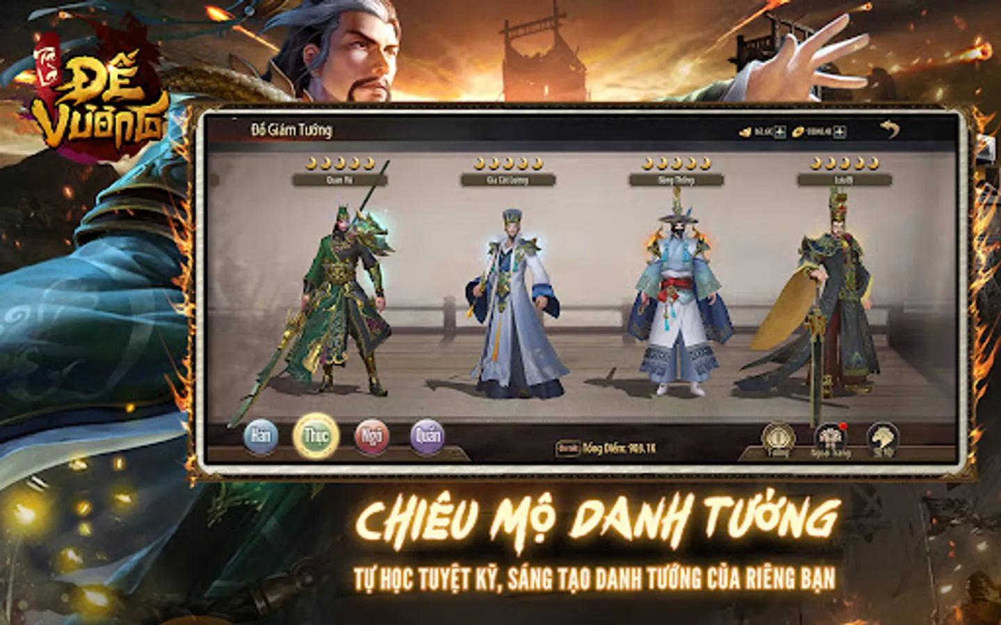 Incarnate into 1 Emperor on the journey to recruit soldiers forever, with more than 50 generals from 4 factions: Wei, Thuc, Ngo, Quan; divided into 5 armies (cavalry, infantry, archer, support, and advisor) with 9 varied and variable spells. Each general has its own strengths, among the famous generals there is a predestined relationship, mutual birth and mutual opposition, so the tactical factor, the arrangement of the squad is put on the top. There are also 20 powerful beasts rushing to the battlefield, cool fashion and a series of ancient gods to help generals have beautiful looks and unparalleled strength, ready to participate in fiery PK screens. .