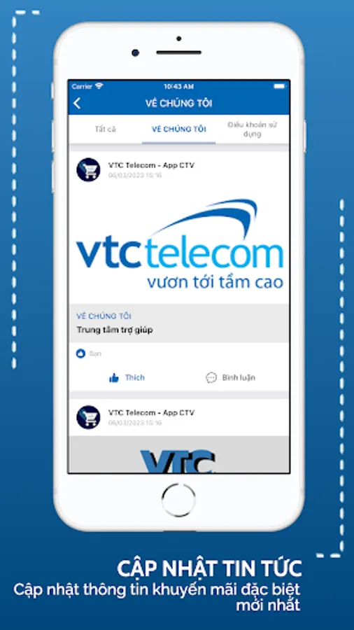 Mobile App VTC - App CTV is an affiliate marketing application developed by VTC Telecom, in order to create a diverse and growing community in promoting and trading the company's products. This application connects users through a mobile platform, allowing individuals and businesses to become VTC Telecom's affiliate partners and take advantage of the business potential of the telecommunications industry.