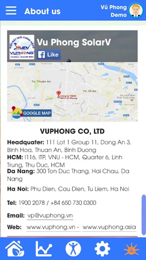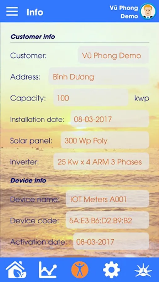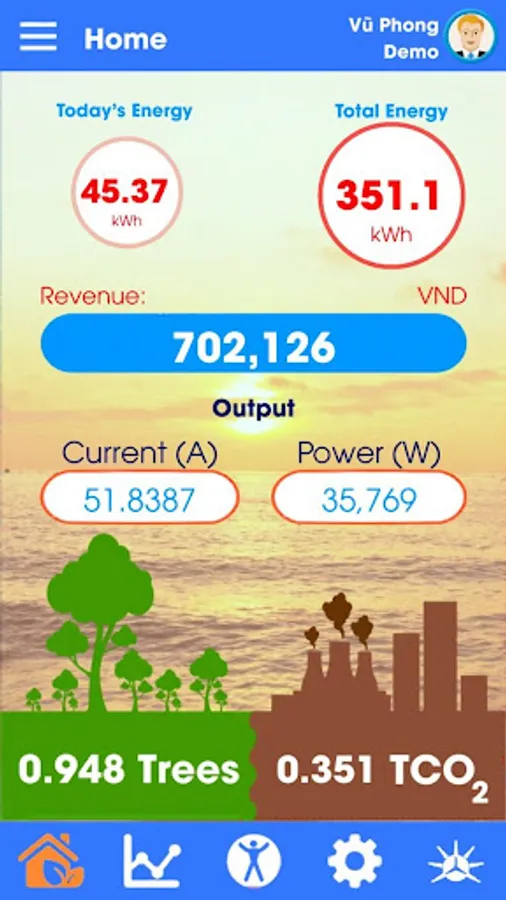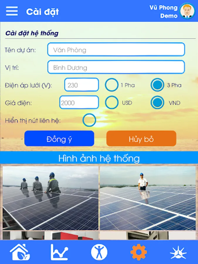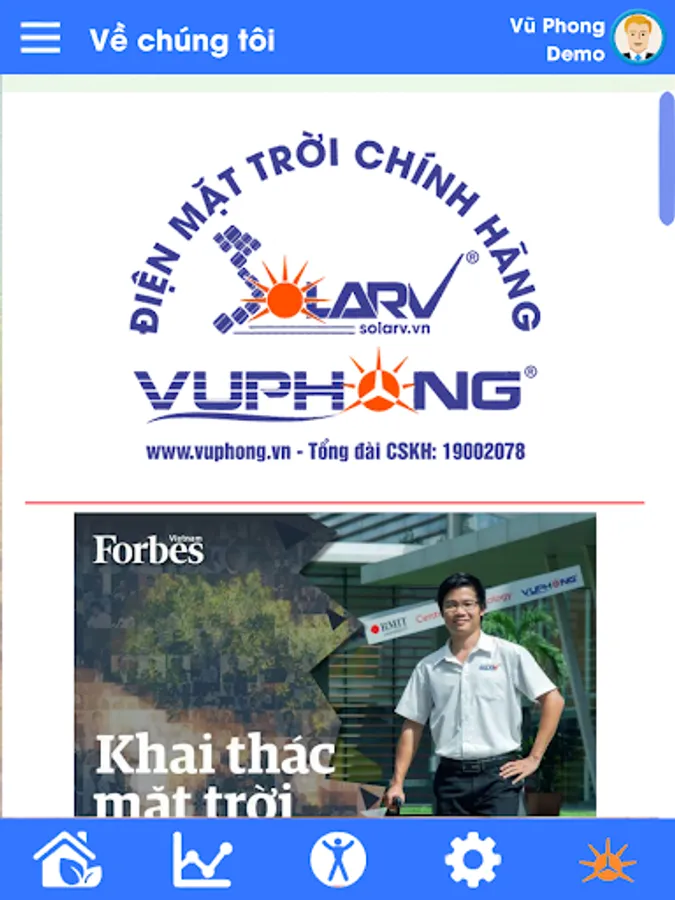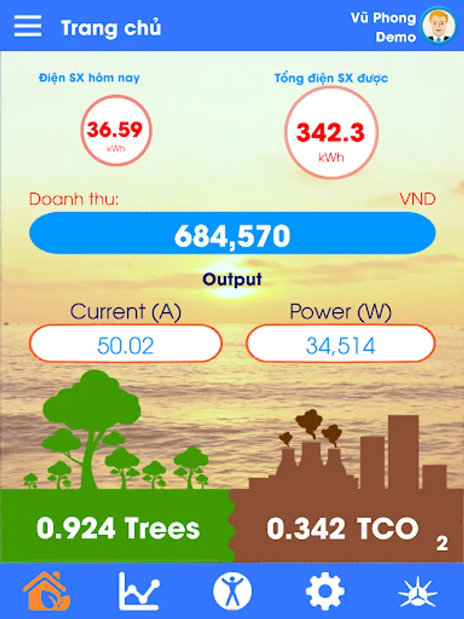 ServicesShow PVMS (PV Monitoring System) - As applications for monitoring the production of electricity from solar power system on your phone / tablet. The data is stored on servers in Vietnam Vu Phong to customers can access at any time by day / month / year ... Integrated features that sales prices of electricity, reducing CO2 properties & future application of the plant is due to clean energy.
