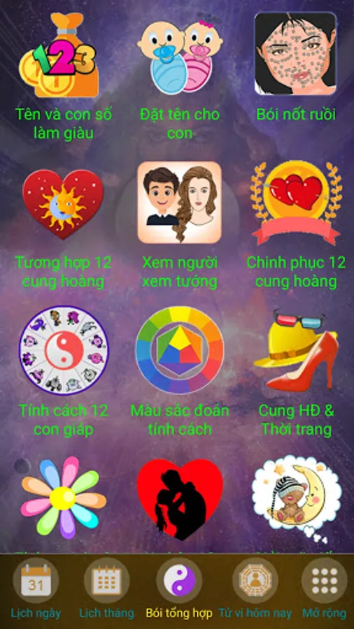 General Fortune-telling - Complete Horoscope - Calendar of Van Su: an application with a massive database, meticulously edited, rich and diverse content, unique interesting interface. You will easily feel the differences and unique layers of meaning.