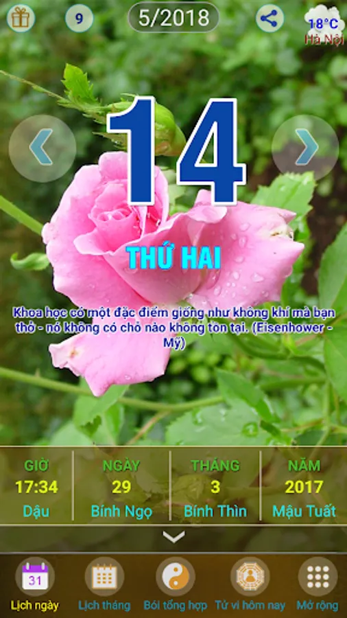 - Calendar month: see yin and yang days by month, easily change other dates, see events of the old days domestically and internationally.