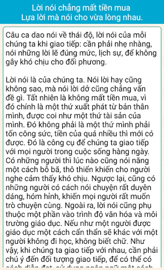 Source folk songs, proverbs very rich, there are the folk song you learned in high school, there is the question of mouth, there are sentences in bold in the book, with the spread on the social network, .. . all closely familiar and popular, all waiting for you to open, awareness, discovery.