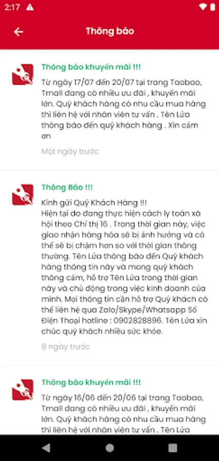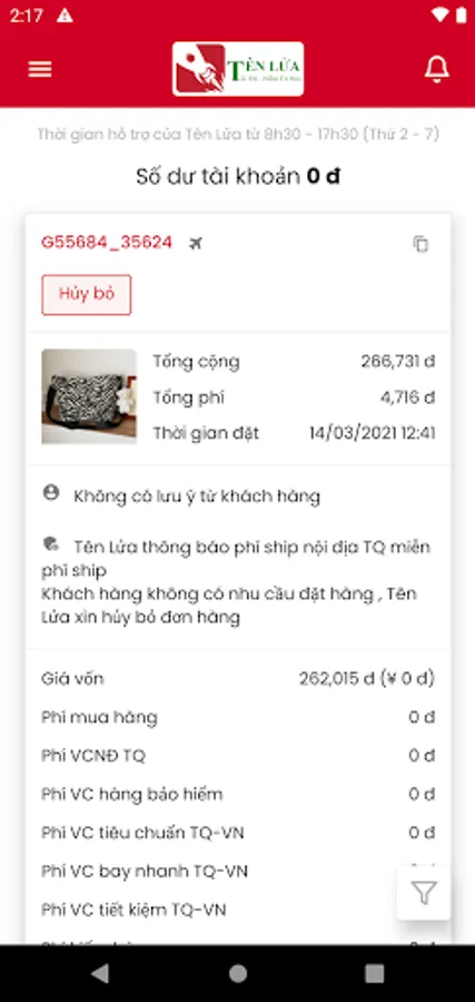Phone application to receive updates on Status, Notes of orders from Tenlua.vn order system.