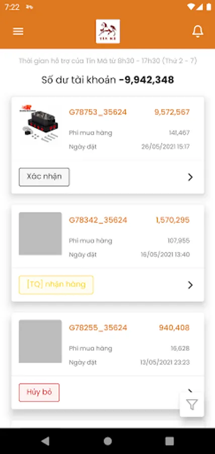 Phone application to receive updates on Status, Notes of orders from Tinma.vn order system.
