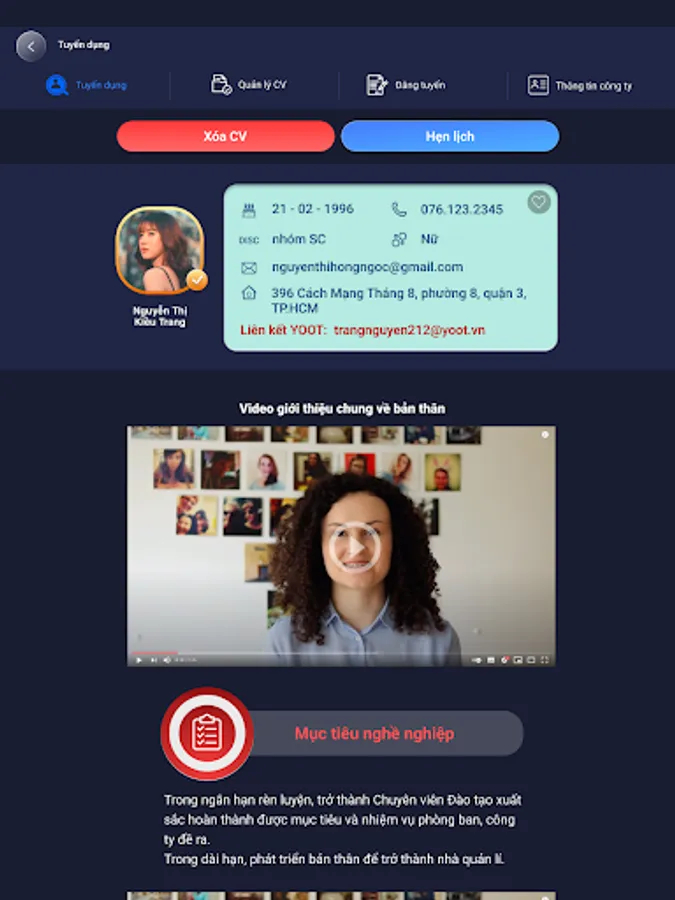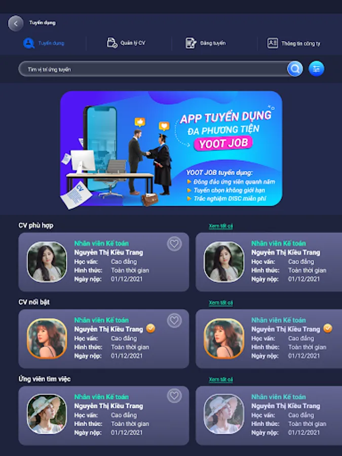Multi-media application creation function, allowing students to attach videos and files, making it easier for businesses to find suitable candidates for interviews and recruit the right personnel.
