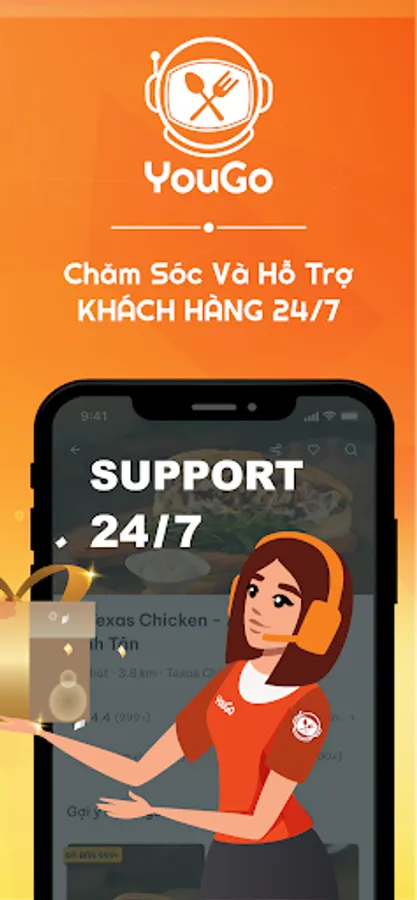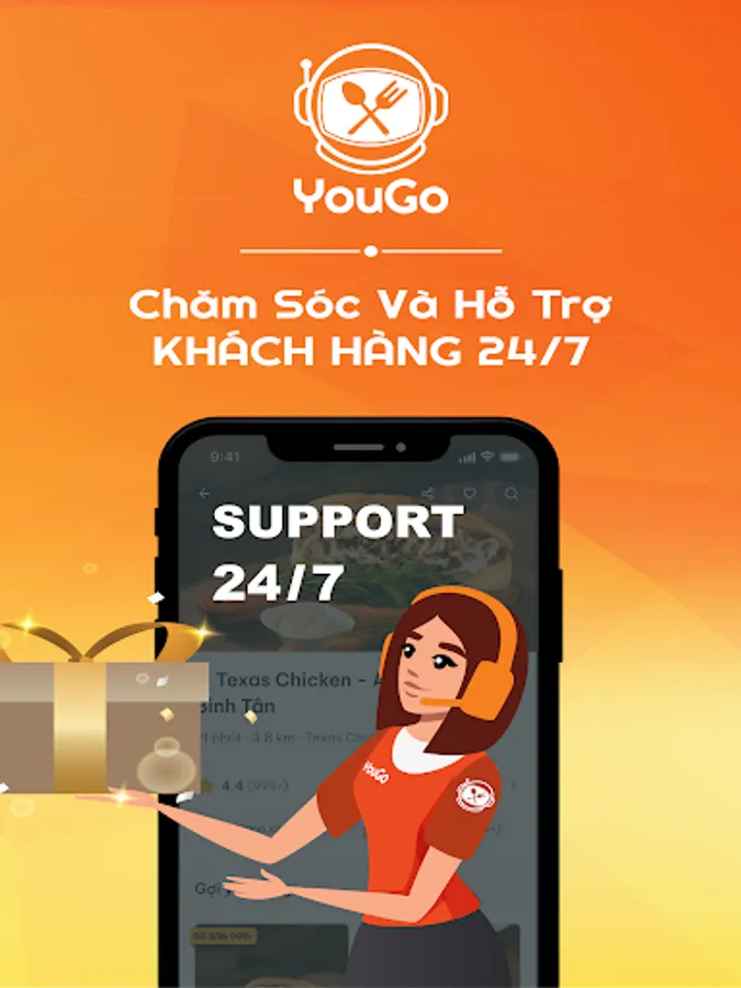 - 24/7 customer care and support: We are always ready to support you anytime, anywhere, ensuring you always have the best experience when using the YouGo food delivery app.