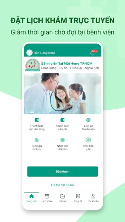 The official application of Ho Chi Minh City Ear Nose Throat Hospital will help people proactively register for an hourly examination schedule, easily find out the hospital's information before registering, reducing waiting time. Now, with the Ho Chi Minh City Ear Nose Throat Hospital application, people can: Register for an appointment directly by the hour, store the history of yourself or a loved one, review the details of your booking journey. , convenient online payment, receive notifications for medical examination or follow-up, update health articles from a team of regular experts... All procedures are done online, helping people reduce waiting time waiting at the Hospital.