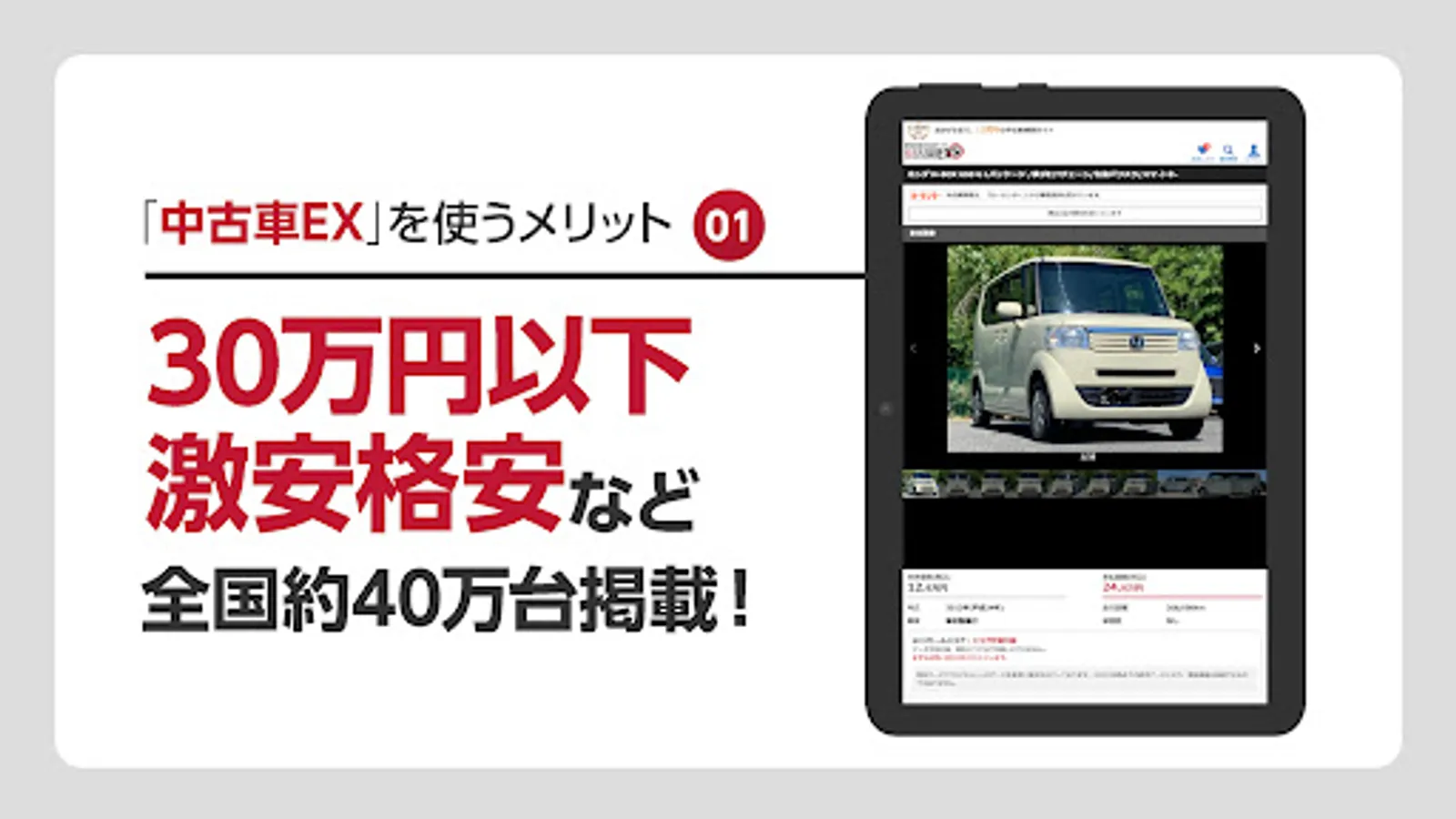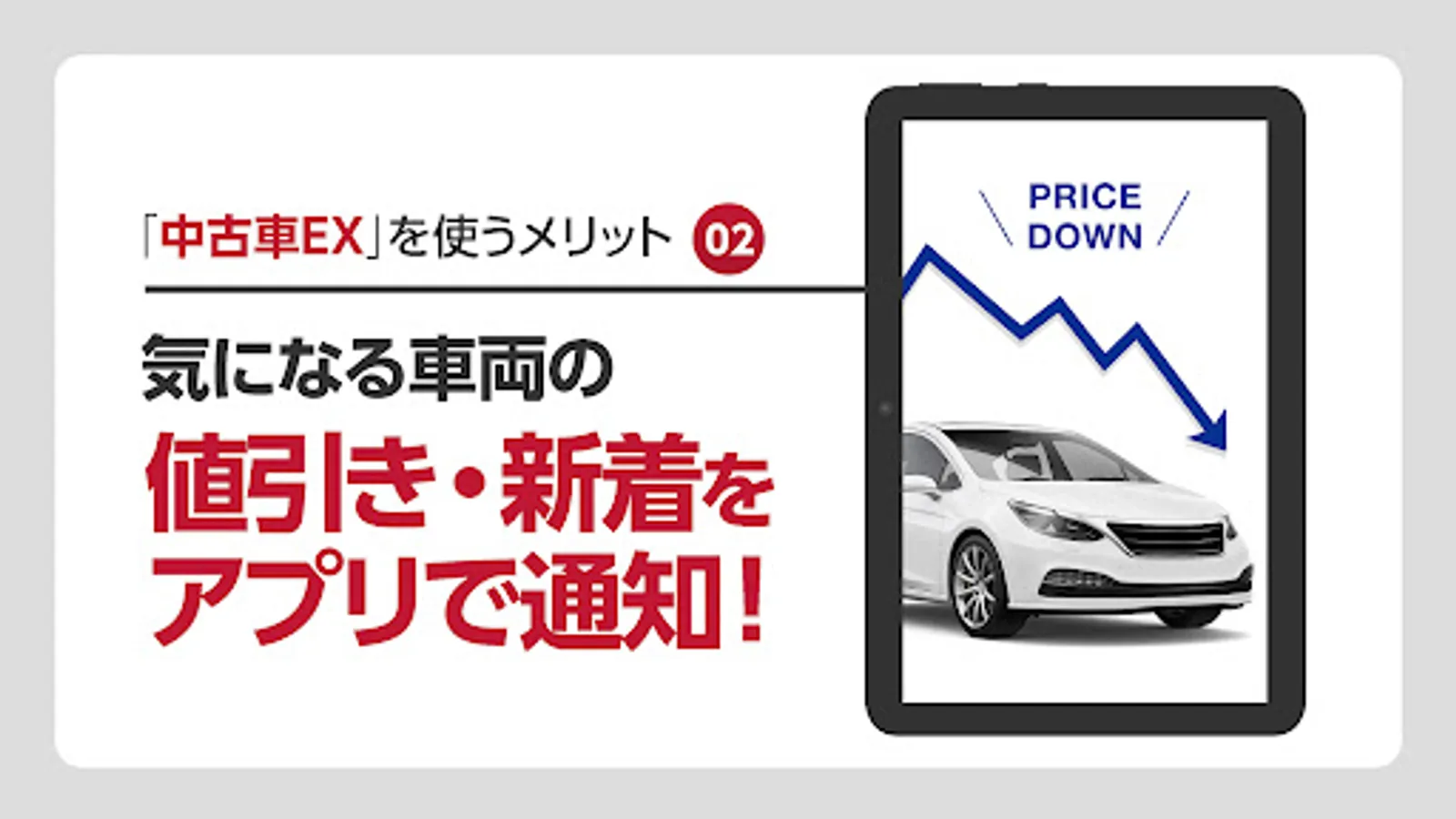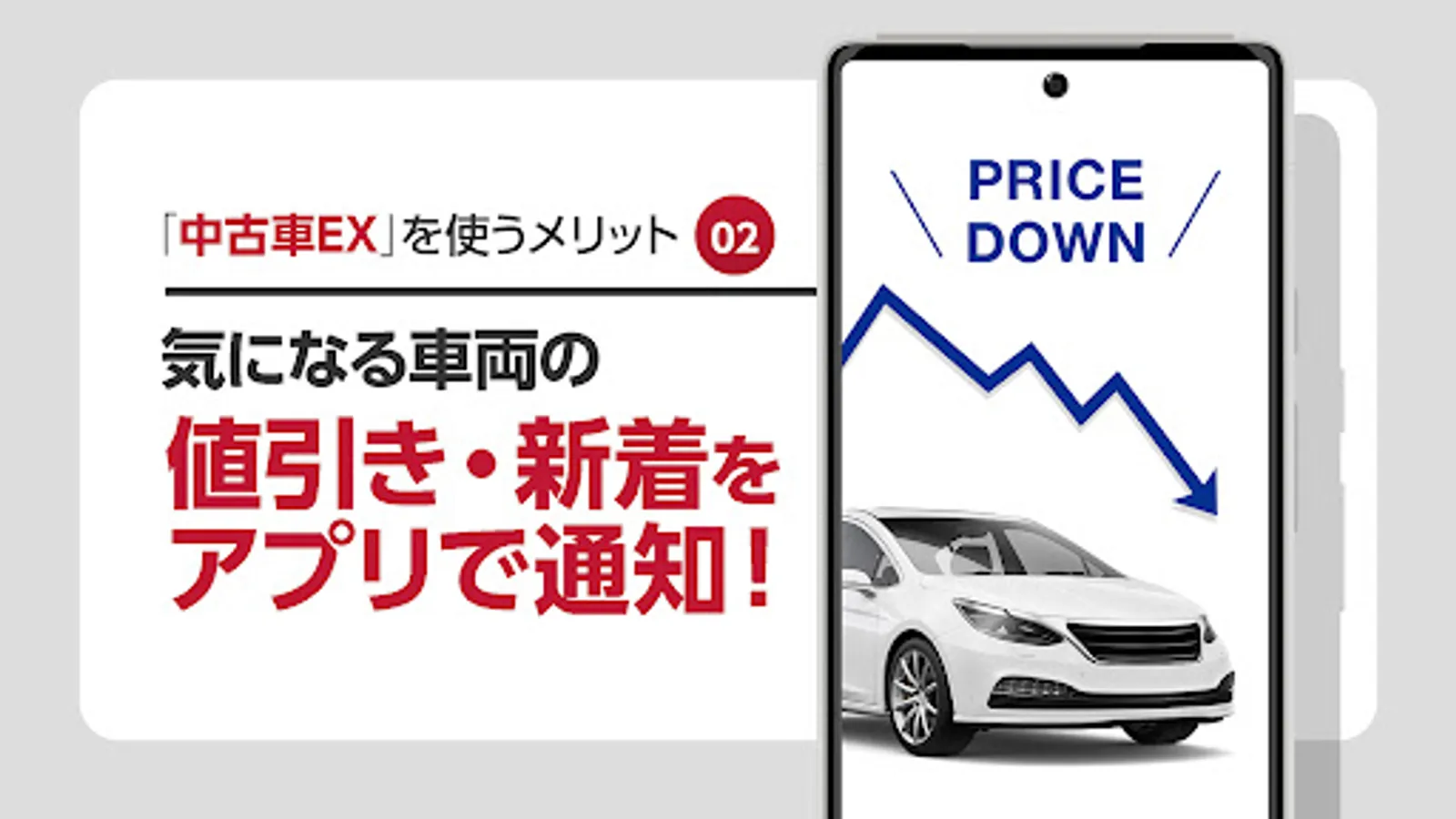 中古車検索アプリ「中古車EX」は、全国約50万台の中古車・販売店の新着情報を豊富な条件で検索できる中古車探しのアプリです。