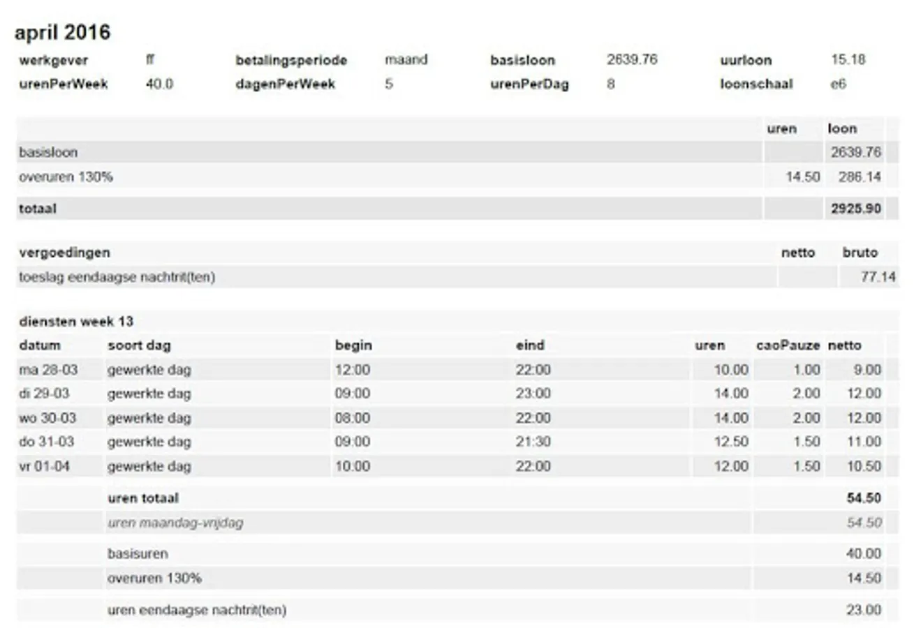 With the VNB Looncheck, employees who fall under the professional freight transport CLA can keep track of their shifts and journeys. The Wage Check functions as a digital timebook and can calculate the following on the basis of the entered shifts and journeys: