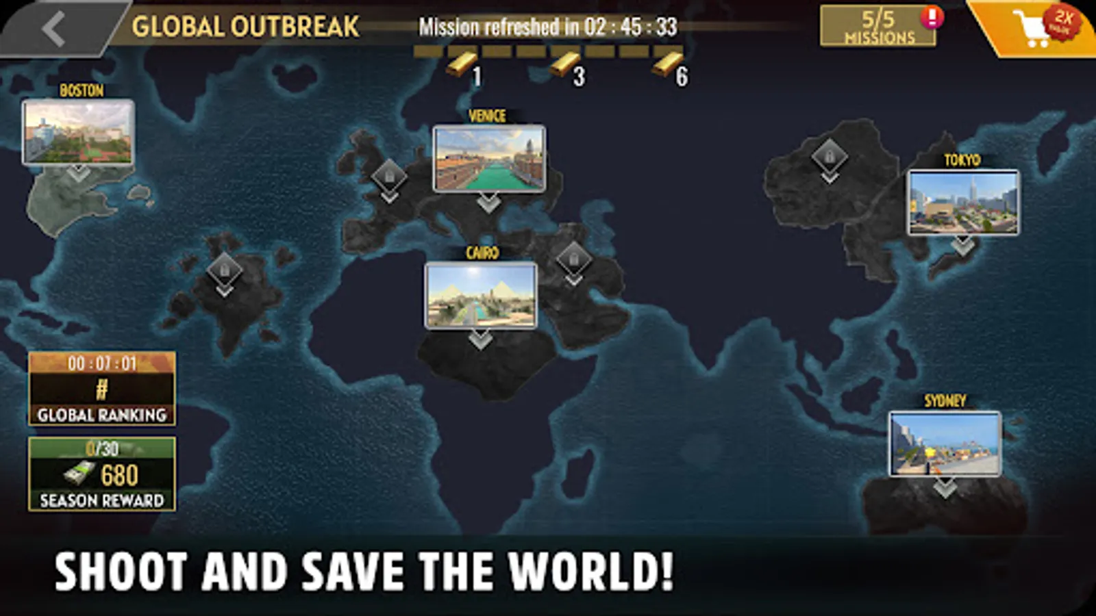 - 100+ challenging missions: Collect epic sniper rifles for shooting and killing zombie, survive the zombie apocalypse, defeat crimes to save hostages.