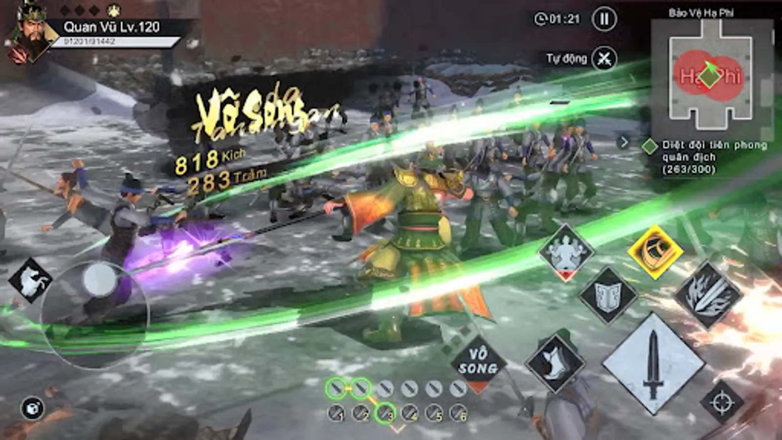 Maintaining the ARPG role-playing "Hack and Slash" (H&S) gameplay, players will control their favorite generals of the Three Kingdoms 3Q legend games. Recruit famous generals such as teenager Trieu Van, Lu Bo, Quan Vu, Truong Phi,... to fight and overcome the barrier of beheading generals. Who will be the famous general with the most Lien Chops, reaching Peak Peak? Join DW to compete today!