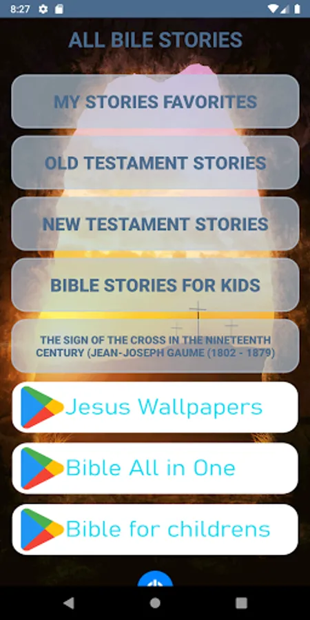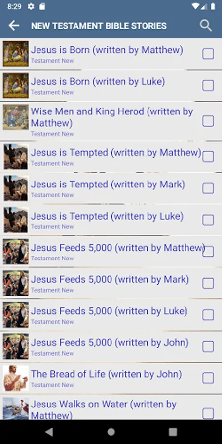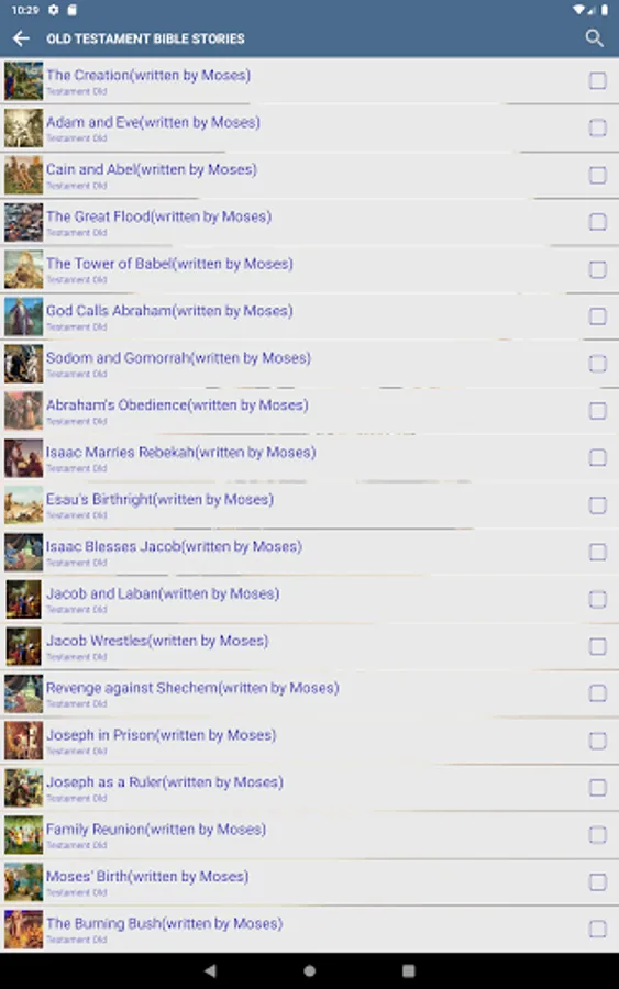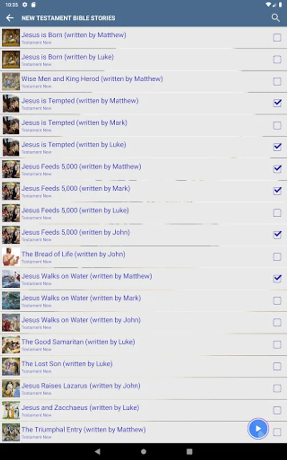 There are over 150 stories in the app. These are grouped in two parts (Old Testament and New Testament). The stories appear in the order that events occurred in history.