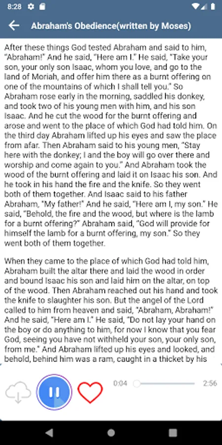 This is app of true stories (books audio) from bible. The stories give you a history of the world from when God began to create until right up to our present day.