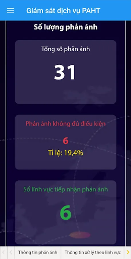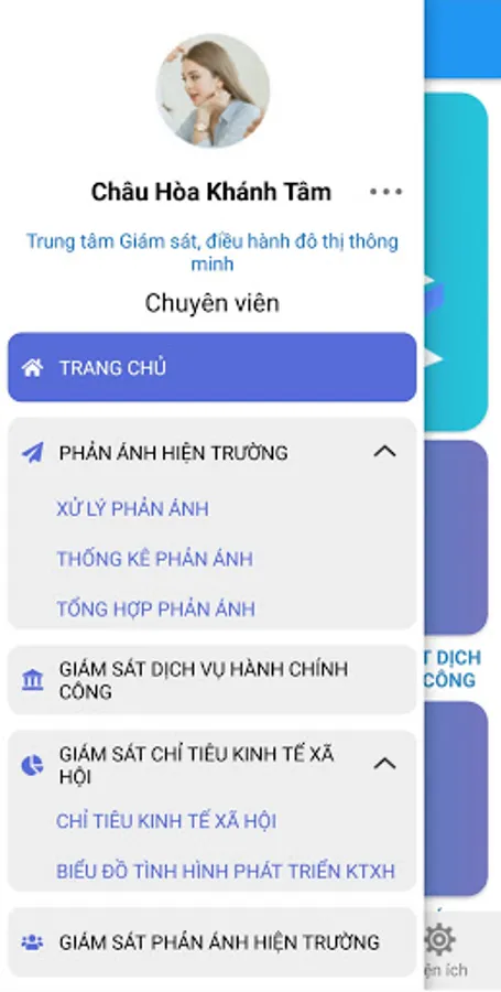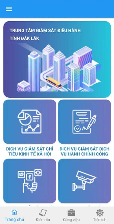 Management application for officials of Dak Lak Smart City Monitoring and Operation Center. Including the functions of Monitoring socio-economic indicators, Supervision of public administrative services, Monitoring of scene reflections and handling of field reports.