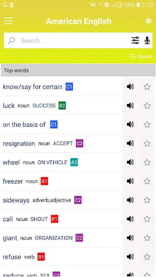 This interactive app features a comprehensive English Vocabulary Profile - American complete with word.