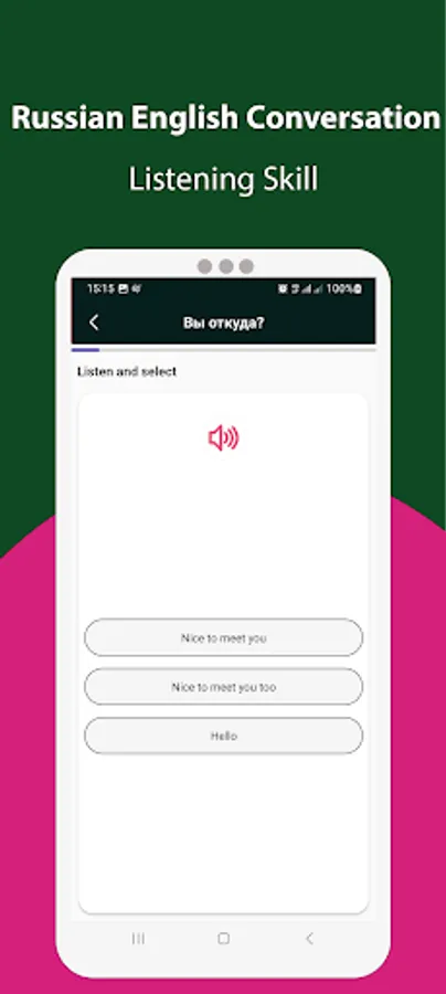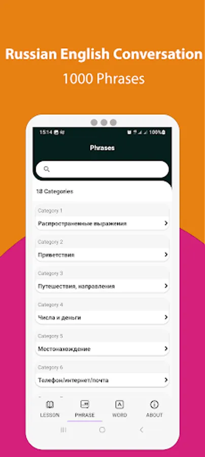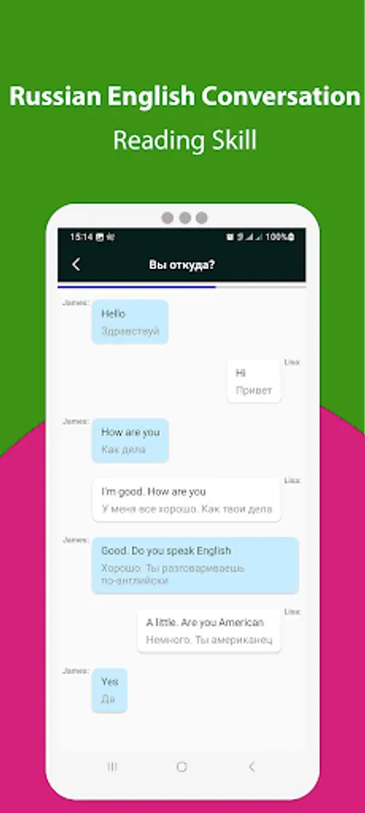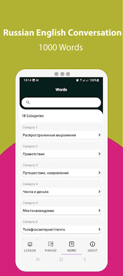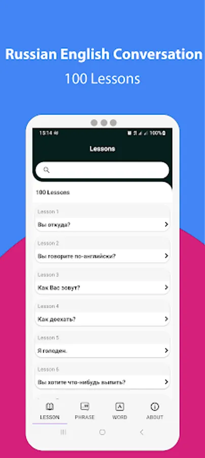 Russian English Conversation includes 100 lessons, 1000 vocabularies and 1000 phrases for your daily conversation.