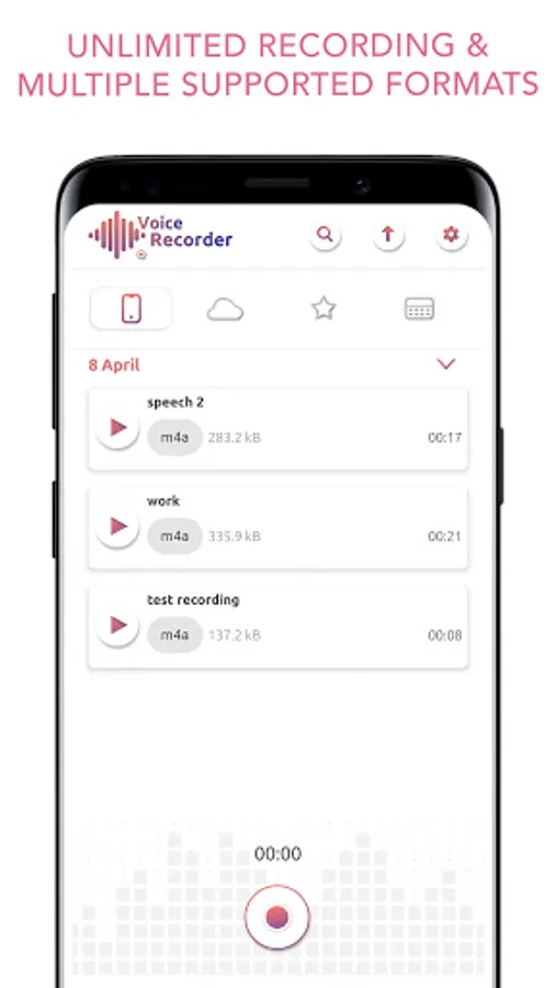 • Cloud support - Save your recording on your device or save them into Google Drive