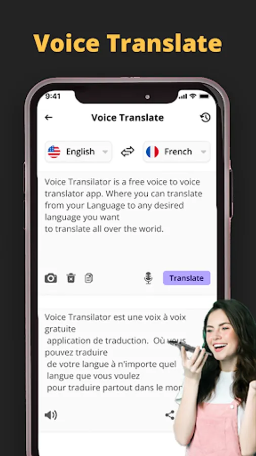 Voice Translator is a powerful translation app supporting 100+ languages translation. No need to pay for translation sever as an all-in-one online translate app. Voice Translator is an essential translator for everyone traveling, business, and learning with rich translation features including screen translation, voice translation, file translation, web page translation, etc.