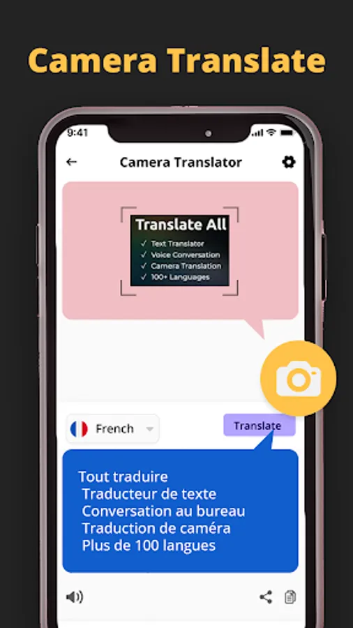 Audio Translator supports more than 100+ Languages to Translate. Translate your required Language and listen to Translated Sentensences for pronunciation.