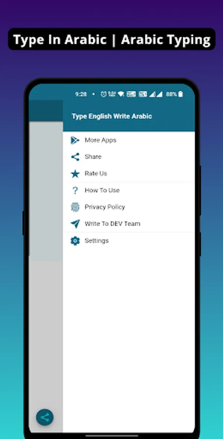 - No keyboard or any technical configuration required. Simple type in English like words and app will convert it to Arabic.